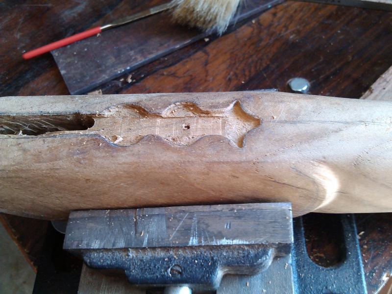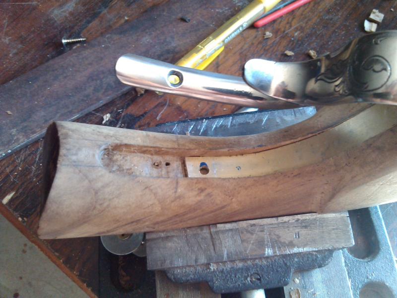 Ha quedado bien, aunque el guardamonte está ligeramente retorcido y me deja una 'luz' como de medio mm en uno de los lados, Cuando esté lijado y aceitado ni se notará.