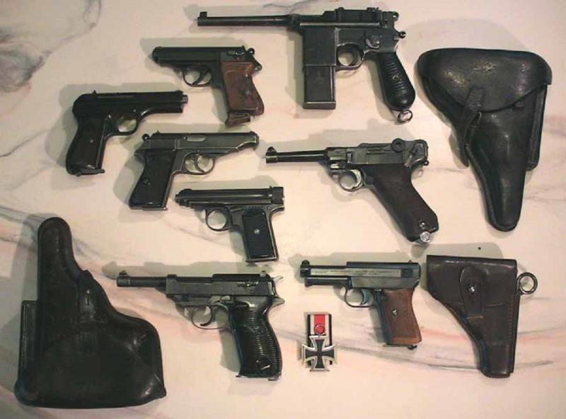 Intento aportar alguna para el cuadro este tan bonito de pistolas: 4.Walther PP. 5.Sauer 38H. 6.Mauser HSC, todas ellas alemanas.