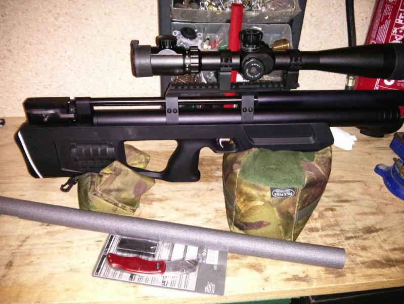 hola . gran idea ! , yo en mi hatsan ( bullpupeada ) , le puse del adhesivo , en mi edgun tengo puesta una vieja muñequera de neopreno vulkan , ala que he recortado la ventana para introducir los balines