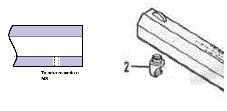 He pensado realizar un taladro de 2.5 mm a 15 mm de la boca del cañón, para luego pasar el macho de roscar a M3, colocar un tornillo y repasar con una lima de cola de ratón desde la boca para que no quede ningún resalte que dificulte la salida del proyectil.
