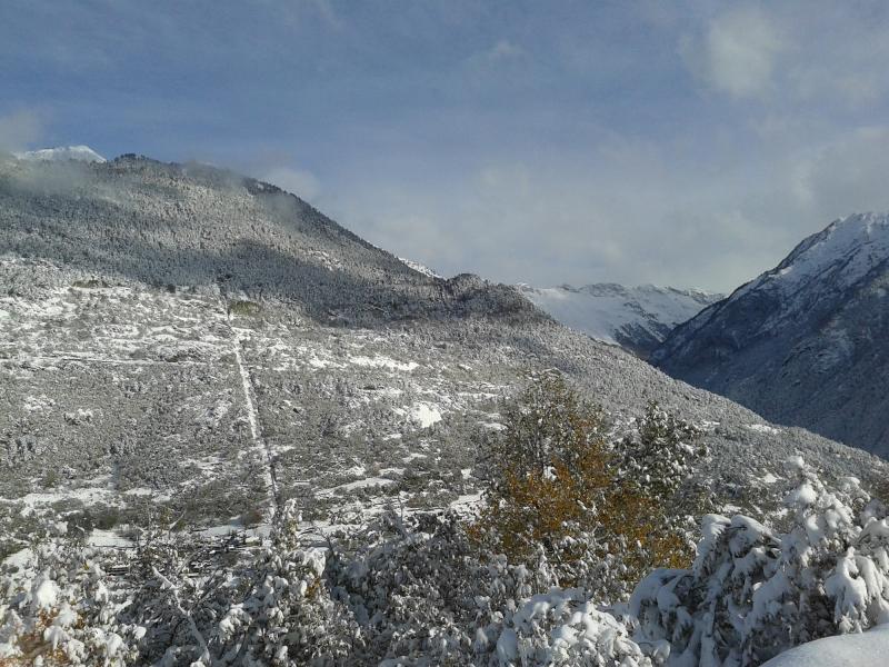 Era mediados de octubre y creo que no estaba acostumbrado a ver tanta ni en fechas tan "tempranas" así que me imaginé lo que iba a hacer... y cuando el coche empezó a abrir trocha en el manto blanco impoluto, como me imaginaba, el tío echa mano del móvil y empieza a hablar con alguien: Nieve, tío! estoy pisando la nieve!... Que sí, te lo juro un montón de nieve! Por todo!