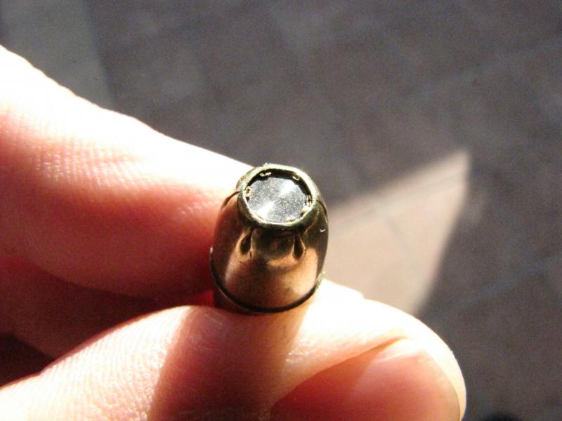 Tengo claro el calibre y la punta expansiva, así como que es +P lo que me despista es la especie de tapa ¿acero? que lleva en la punta. El culote lo pinté de verde con un rotulador y luego lo limpie para que resaltaran las letras por eso el color de estas.