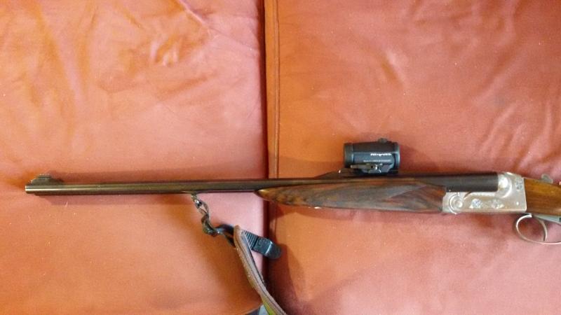 Vendo express paralelo Eric Mathelon calibre 9,3x74 R. Dos disparadores y extractor, cañones de 57 cm. Guardamanos cola de castor y culata inglesa con carrillera. Baleo perfecto y estado impecable tanto de metales como de maderas, culata de 36.5 cm. Cantonera Pachmayr fina. Con base para punto rojo instalada, maletin de transporte. Año de fabricación 1993 de los primeros construidos por este artesano francés, nº de serie 60, único en España, muy pocos disparos. Precio 2.500 €. Si se entrega en mano, varios útiles para la misma
