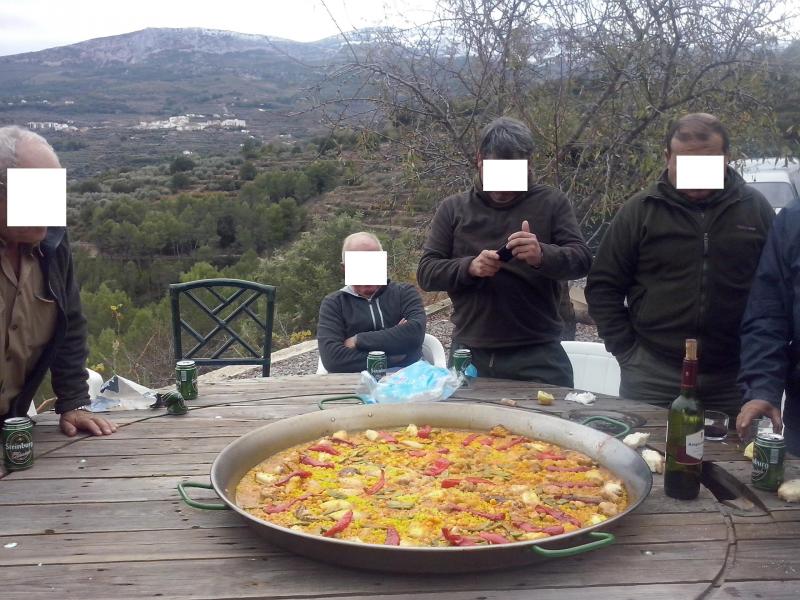 Aqui os dejo mi primera aportacion para este post(ya que casi siempre cazo en mano solo con mis perros y me como un bocata jeje),una caza en mano al Jabali entre amigos,que solemos hacer antes de navidad.Las fotos son del desayuno ya que luego comimos rapidamente para repasar una mancha buena antes de que se fuese el dia..Yo me hice con dos primales estrenando el Remington 700 y falle otro mas grande,el primero que tire por la mañana.Podeis observar la pelua que habia caido estaba todo blanco.