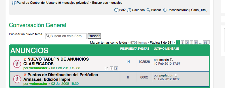 Me he tomado la libertad de hacer unas capturas de como veo yo los foros ... por si hay que corregir algo por no verse como se deseaba ... he de hacer constar que uso Mac OSX Maveriks y Safari en su ultima version (puede afectar a la visualizacion).