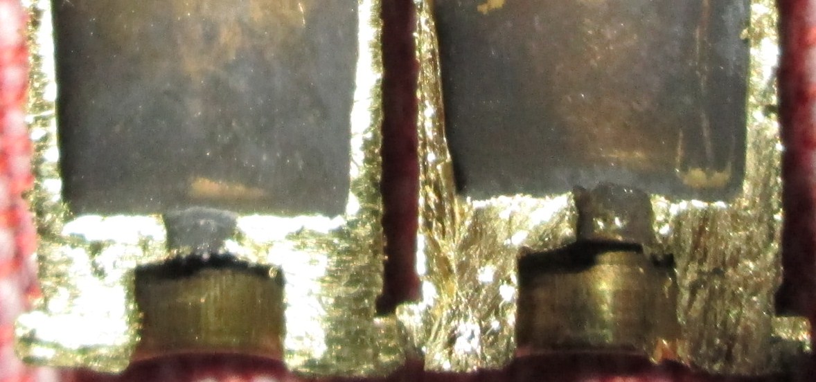 Ayer corte dos vainas del 38 de cada clase y dentro de las dificultades que tenia para ver las diferencias entre vainas dado que el corte no era todo lo limpio que hubiese querido pude ver que efectivamente la vaina wad cutter es diferente a la normal, un pelo mas conica abajo, pero me dio la impresión que esa diferencia es muy minima y habria que medir muy bien las paredes de la vaina en su base para sacar las diferencias.