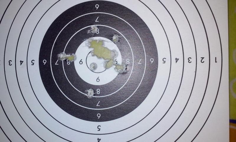 Bueno aprovecho y os pongo estas dos dianas en las que descarto desperfectos de la optica.ambas a 40 en sitio cerrado . La primera es de la hw97 que esta a 16 j justitos ,la segunda de la tx200