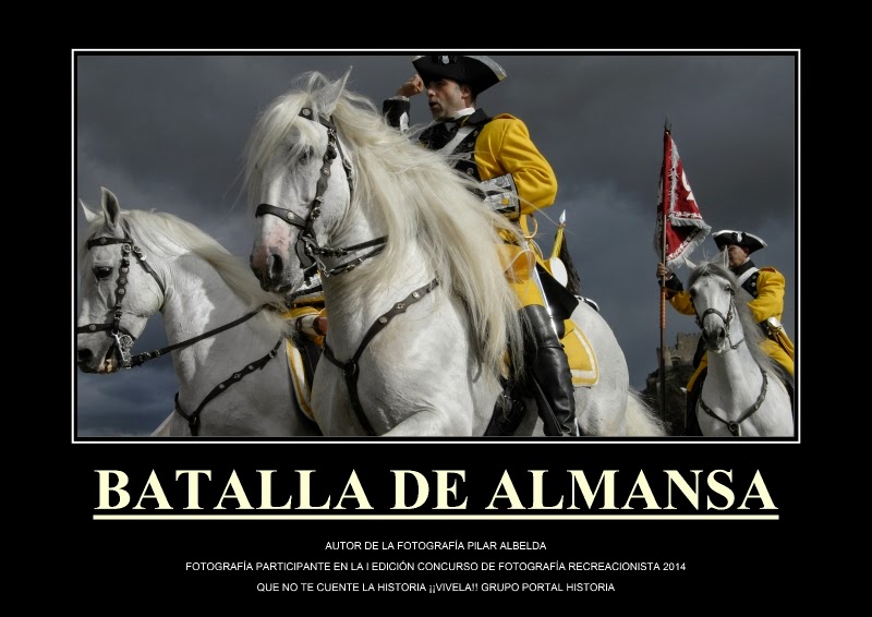 VENATOR escribió:Todos los años, en el último fin de semana de abril, se realizan unos actos conmemorativos de la Batalla de Almansa, que incluyen Recreación Histórica, Izado de Banderas Europeas y un Homenaje In-Memoriam a todos los caídos en esta y cualquier otra batalla de la historia europea, donde también acude una representación de nuestro Lusitania aqui os pasamos el cartel y los actos a celebrar, tan solo a 1'15h de Valencia.