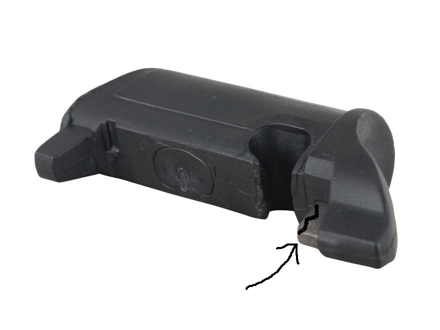 Así que decido desmontar la pieza y montarla al revés ,ya que esa sería la posición para zurdos. Al invertir la posición, la cara donde apoya el cargador esta impoluta.