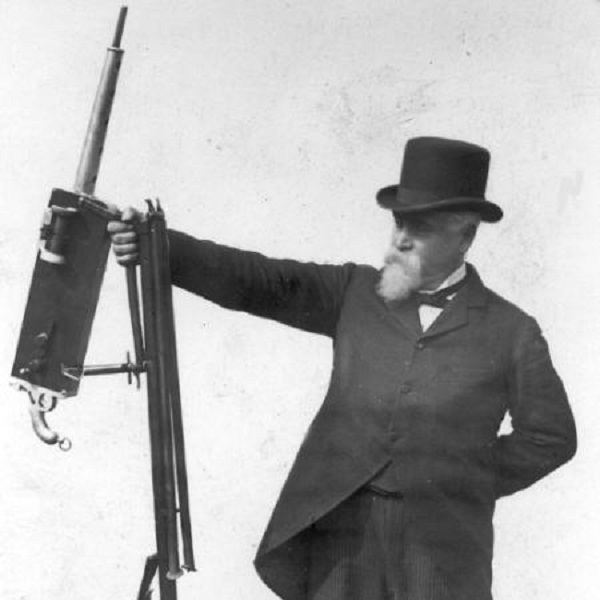 Se trata de Sir Hiram Stevens Maxim (1840-1916) y sus famosas ametralladoras.