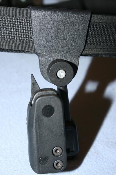 Cinturón de IPSC no se la marca, tres porta cargadores, funda Roppee & Schumann (todo comprado en Top Gum).
