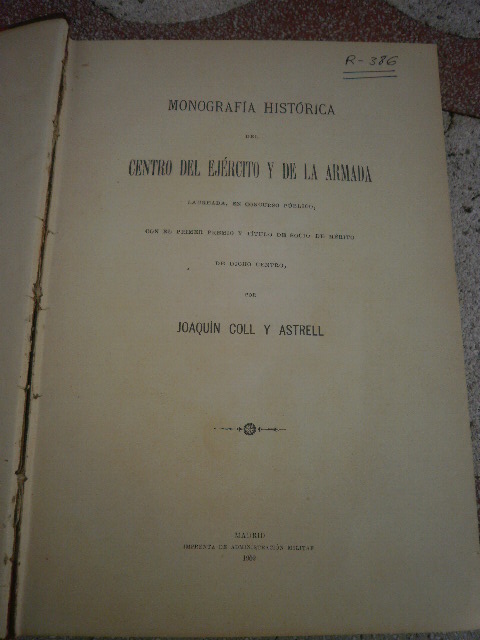 COLL ASTRELL, JOAQUIN:. MONOGRAFIA HISTORICA DEL CENTRO DEL EJERCITO Y DE LA ARMADA.