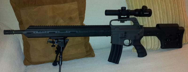 Muy bonito si señor!, como yo tenía mi AR antes, bueno, de hecho lo que tengo es el upper de 20" así. Solo te quedan cuatro cosillas, que el delta ring no sea cónico y un pistolete A1, el resto ya es más complicado, un cañon "pencil" y su front sigth y un upper y lower colt. Adjunto foto antigua de mi anterior configuración, upper Colt sin foward assit y con culata anterior a la A1, sin trampilla trasera y ligeramente más corta que sus predecesoras.
