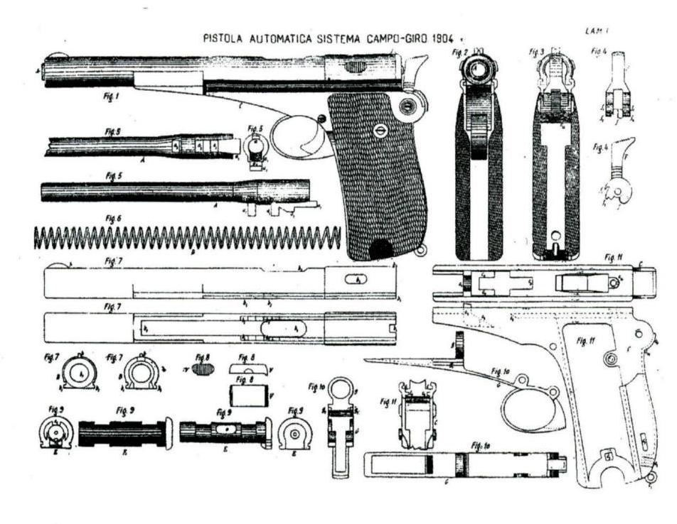 ".......nuevo elemento que puede denominarse amortiguador del choque de retroceso, destinado, como su nombre lo indica, a amortiguar el choque producido al abrirse el arma durante su funcionamiento, asegurando el del sistema y aumentando la duración de la pistola, por atenuarse en gran parte su trabajo durante el tiro; la precisión parecía había de resultar mayor, puesto que en los disparos que se sucedan al primero, por rápidos que se efectúen, la alteración de la puntería que produce por elevación del cañón en cada disparo, depende en gran parte de los choques que se producen"."