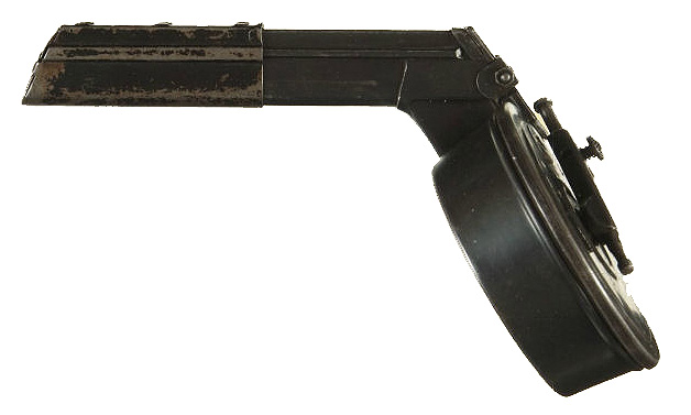 La más larga es un protector para el cargador y la más corta, y a la que yo me refería, un adaptador del Trommelmagazin de la pistola LP 08 para el subfusil MP-18.