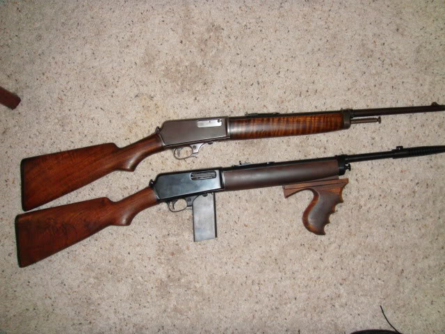 Exacto, dos de la armas que el armero Hyman Lebman adecuó para la banda de Dillinger; según se cuenta el propio Dillinger y Nelson Cara de Niño se presentaron en San Antonio, Texas, en su armería, haciéndose pasar por potentados petroleros, Lebman les arregló cinco ejemplares de la Colt en automático, alguno en calibre .38 y el Winchester 1907: les añadió la empuñadura delantera tipo Thompson, compensador de boca y cargador largo.