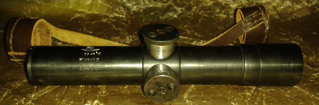 En las imágenes se aprecia que el visor tiene tres grupos de marcajes, aparentemente realizados en fechas distintas. En el de más arriba, la estrella de cinco puntas y la hoz y el martillo son símbolos evidéntemente soviéticos. El marcaje que hay debajo de la hoz y el martillo es una lente plano-convexa, la cual indica quien fué el fabricante del visor. En 1.936 la URSS hizo un contrato con la compañía alemana Karl Zeiss para que instalaran en la ciudad de Leningrado una fábrica para la fabricación de aparatos ópticos, con el nombre de "Progress". En el año 1.941 se trasladaron a Omsk. Debajo de este logo de la marca figura el año de fabricación, y por último el nº de serie (que puede comenzar como en este caso por Nº, o por NºA o Nº seguido de la letra cirílica que se corresponde con la "A").