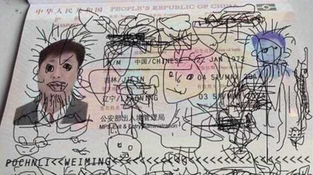 Un niño chino de 4 años decidió mostrar sus dotes artísticas dibujando en… el pasaporte de su padre. Lo peor del caso es qeu lo hizo en el avión, en pleno vuelo de China a Corea del Sur.