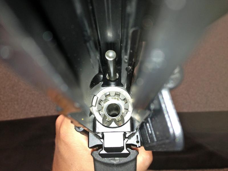 Vista del brocal, las medidas para los cargadores son STANAG no las del resto de los AR, por eso existen problemas de intercompatibilidad con algunos modelos de cargador AR15.