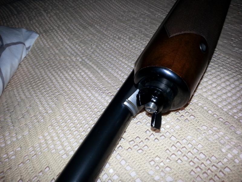 Te puede parecer sorprenderte, pero si te es urgente por lo comentado antes y no tienes alternativa por no disponer de otra arma, yo no me quedaría sin cazar sólo por ese "problema", al fin y al cabo ese tapón lo único que hace es apretar, lo mismo que te va a hacer la tuerca.