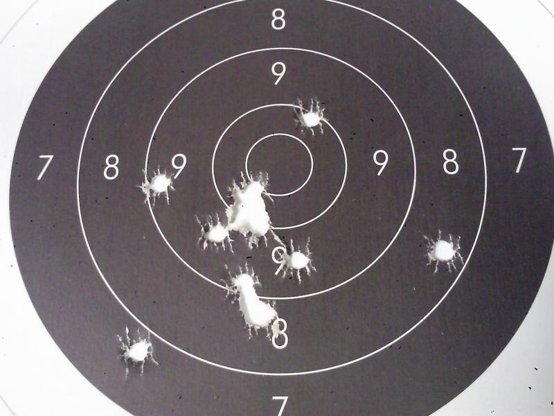 ............ pero luego a pesar de las buenas sensaciones no acabo de agrupar, o lo hago donde no debo. Toquiteo un poco alza y túnel y no acabo de centrar, pero observo que los pistones salen hechos añicos aunque el martillo no se revoca.............. pero por si las moscas cambio la chimenea. Luego en casa he visto que ya tiene 0,9 mm de canal.