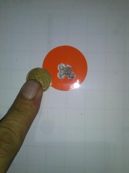 unas fotos de las pruebas de tiro en galeria a 50 metros,visor viper optisan 6-24 y apoyo en banco cadwell matrix con cinco impactos en cada posit de 28 mm.para mi mas que suficiente.
