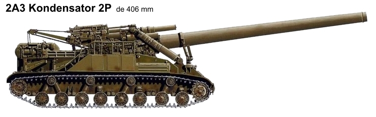 Empezamos con esta mole de artillería ATP, desarrollado durante la guerra fria, para el posible lanzamiento de cargas nucleares tácticas o de campo. El 2A3 Kondensator 2P de 406 mm (chasis de ISU-122)