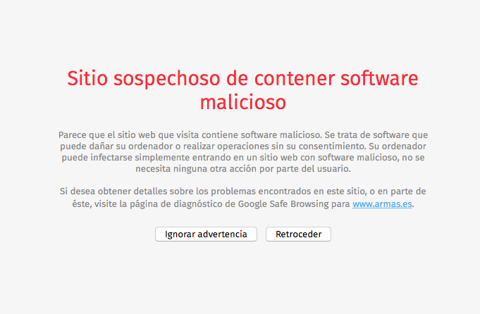 Desde esta tarde, cuando entro en armas.es me dice que la página es una web atacante que roba información, contraseñas y demás.