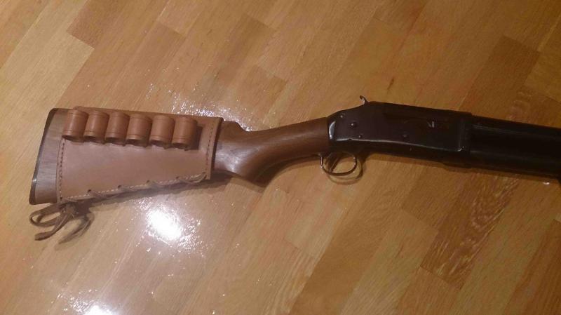 Creo que alguien ha preguntado por la Norinco 97. Yo tengo el modelo con el cañón de 71cm (28") al que le he hecho unas fotos con un poco de prisa pero que más o menos os muestran la escopeta. Os puedo decir que el acabado de metales es excelente. Nada de microfusión aquí. Es todo acero forjado con un pavonado intenso de buena calidad. Las maderas que traía de serie no estaban a la altura y se las cambié por unas Boyds de buen nogal que hacen que la escopeta parezca otra cosa. De USA me he traído el portacartuchos de cuero específico para este modelo que queda como un guante.