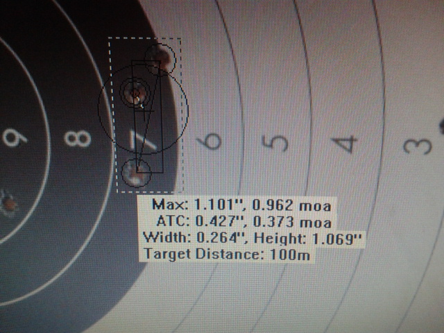 Vamos por partes comiendo como rederencia la serie de cuatro en la que un tiro está un pelin por encima que yo diría que fue el primero dos tiros pegados uno al otro que serían casi con seguridad 2 y 3 y el que esta más bajo que yo diría que es el último , en primer lugar la agrupación de los centrales está bien pero debes descartar una serie de cosas, primero doy por bueno que el punto de apoyo del rifle es idóneo no tocando el cañón con nada posición completamente a nivel y buena sujeción, cuando haces estas pruebas dejas enfriar el cañón de tiro a tiro , en estos rifles de caza con cañón estándar a tiros muy seguidos aumenta la dispersión, otro factor a tener en cuenta es si tienes una serie de 4 que todas las vainas sean del mismo fabricante, y por último lo de las vainas remington yo en mis pruebas he notado que con esas vainas aumenta la dispersión no se sí será por la variación interna de volúmenes pero nunca me han hido bien,