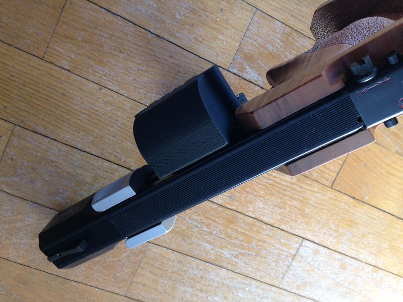 La fijación al cargador puede ser asegurada con los dos tornillos que han sido provistos a tal fin, pero no es imprescindible. Del mismo modo, como sucede en el original, podría usarse el sistema de pasador de la base del cargador para sujetarlo, pero considero que es una solución menos práctica (Consultar).