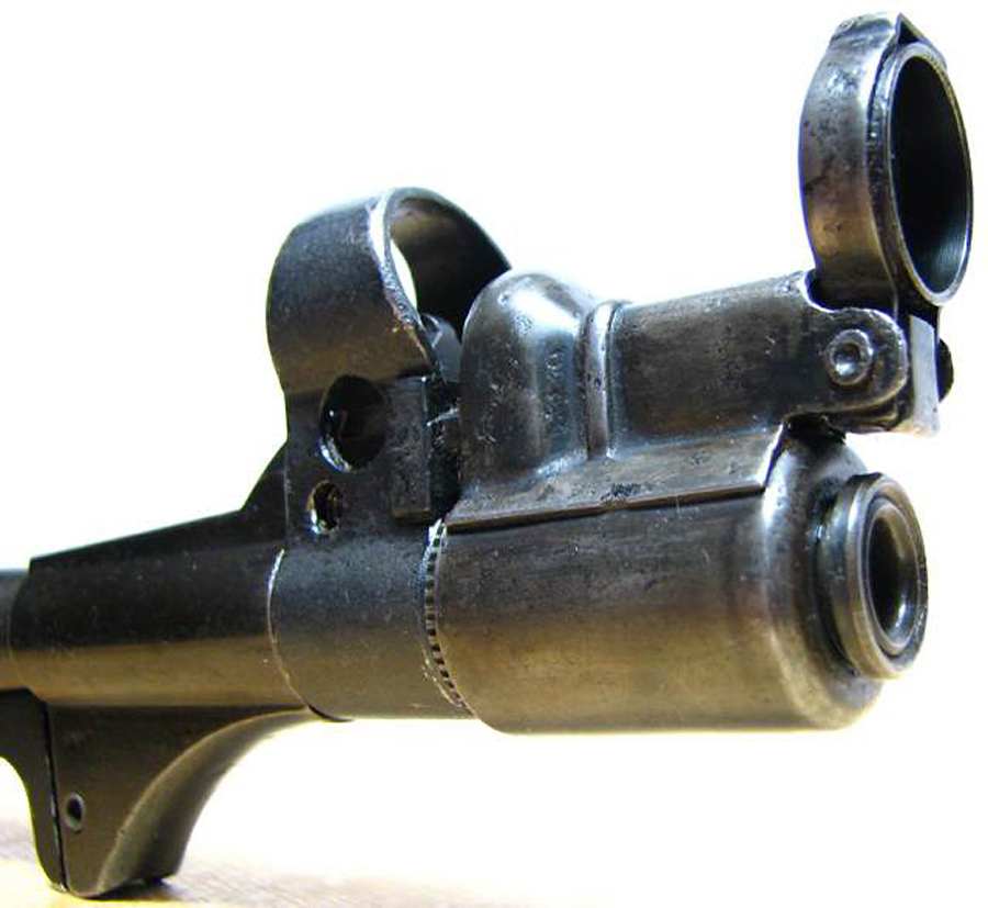 Es correcto. En esta imagen el detalle a identificar era el tapabocas del MP 38-40, un cotizado accesorio para este subfusil muy difícil de encontrar en la actualidad.