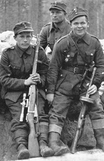 Existe sin embargo una foto de este mítico personaje en la que si podemos verle con un fusil provisto de visor en sus manos. Es una imagen de un Simo Häyhä muy joven, seguramente de su etapa en la Guardia Civil Finlandesa a mediados de los años 30 y por tanto unos cuantos años antes del comienzo de la Guerra de Invierno.