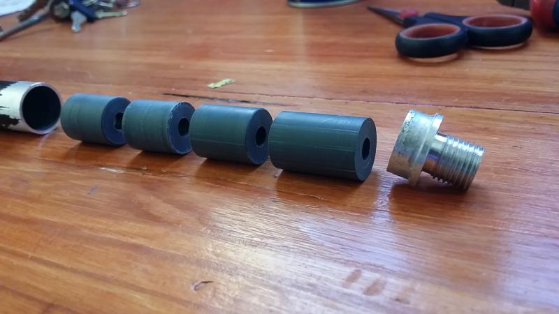 Adaptador de 1/2" unf para tubo de 20 mm y bafles, mas el tubo tipo bullbarrel.Esto se hizo para una hatsan at44 bullpup. Todo 35 eur portes incluidos.