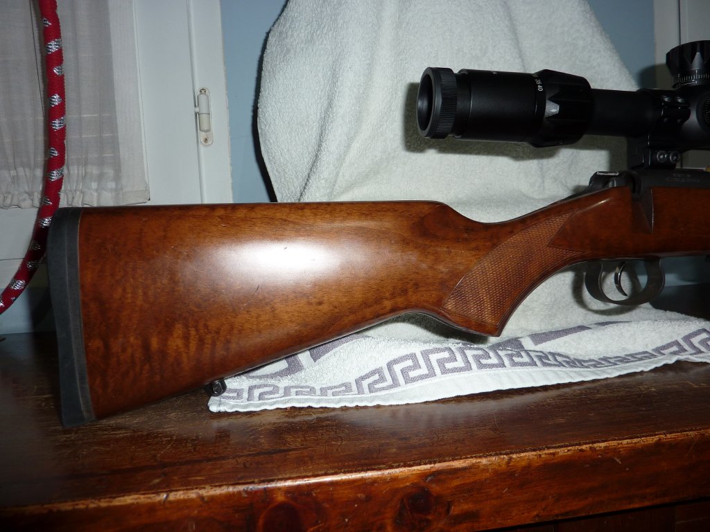 VENDIDA Tiene gatillo al pelo Frances, esta fabricada en el 2008, como se ve por los marcajes de cañón y cajón de mecanismos, pocos tiros, lleva incorporado un rail tipo Anschutz, y un punto de mira, (la he usado en mini F Class y en miras abiertas), muy buena precision, no se incluye el bípode ni el visor ni la anilla para la correa de tiro, solo la carabina, la muesca en la culata que se ve en la parte izquierda, es para poner un alza para miras abiertas, esta en Granada, a toda prueba, en el Campo de tiro de las Gabias.