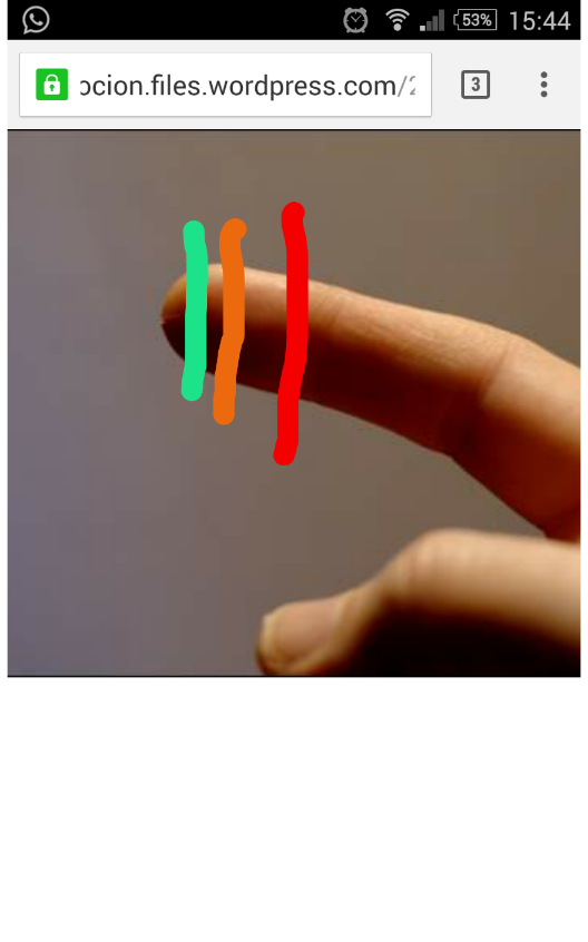 A ver si se entiende la imagen... Verde punto más firme del dedo, Naranja centro blando de la yema y Rojo articulación sin sensibilidad.