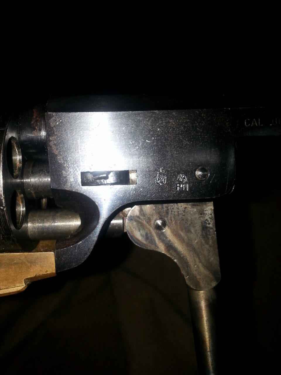 Es un Colt Navy mod. 1851 tiene tres marcas en el armazon y dos en el cañon en el tambor tiene otras dos marcas y las letras PATENT N. Es del calibre 36. El numero de serie que aparece es 50618. Las marcas creo que son marcas de prueba de italia. Haber si puedo reducir de tamaño las fotos y las subo y me decis si es original. Gracias por la ayuda