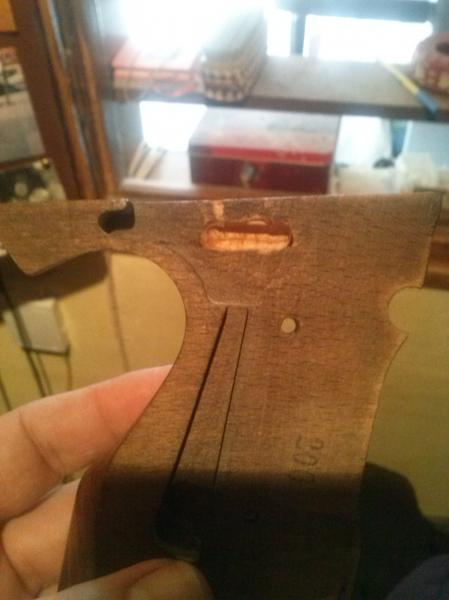 Al hacerle el agujero a las cachas,para que se acoplaran bien,al arma calo un poquito por la otra cara,pero vamos una minirajita,que no las afecta para nada,ya que es una madera bastante robusta,puedes montarlas y desmontarlas todas las veces que quieras que no les va a pasar nada.