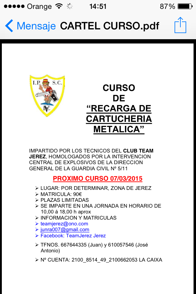 Corrijo un poco , me he metido en la página de la Federación Murciana de Caza y pone que la fecha máxima de inscripción es el dia 5 de Febrero o cupo de 10 alumnos , al que le interese que se dé prisa , que se queda en tierra .