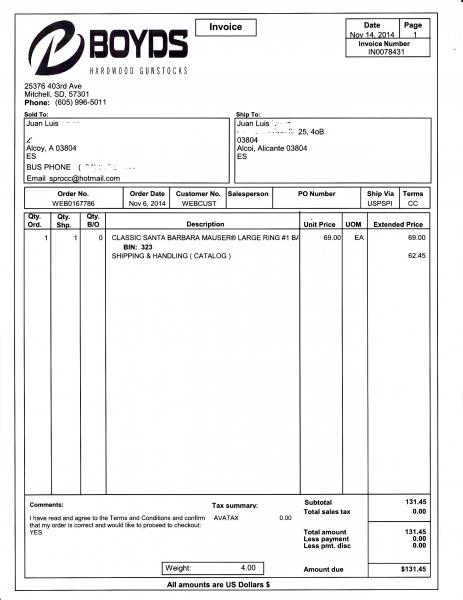 Yo nunca he hecho un pedido superior a 100 USD...de modo que es posible lo que dices. Lo he mirado y parece ser que en culatas y guardamanos de escopetas no hay limite de precio en el pedido....no sé, mi inglés es "nivel usuario" jajaaj De modo que les he enviado un correo preguntándoles explícitamente la historia.