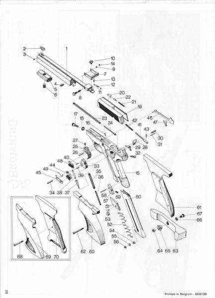Realmente, es muy fácil desmontar. Aflojas el tornillo nº 17, que va delante del guardamontes, y listo. De serie, trae un arandela, la nº 18, es una arandela normal y corriente, pero a veces se pierde.......si ves que quitado el tornillo y arandela, no sale el cañon hacia adelante, eso es debido al ajuste perfecto que tiene, tiras de la corredera, y la sueltas, como si la cargaras, y ya sale, solo tener cuidado, de que no se caiga el cañon al suelo.......