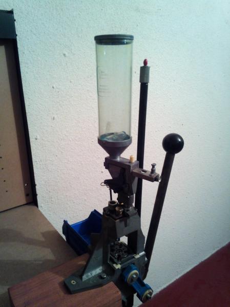 Prensa Dillon Square Deal B, con muchos repuestos, herramientas y posibilidad de recarga para los calibres 32, 38, 9 Pb y 45.