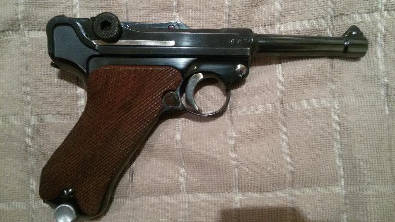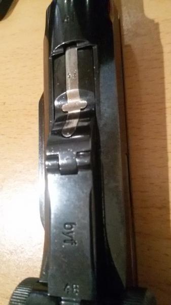 Por último decirte que ese repavonado no es el que se ajusta al que esta pistola traía realmente en origen ya que las pistolas Mauser P.08 militares como esta tuya desde el año 1937 ya no tienen partes amarillas pavonadas por calor y por tanto una byf de 1941 debe tener todas sus piezas y partes pavonadas en oscuro.