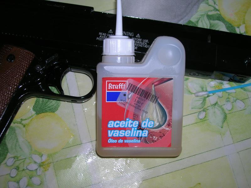 Yo aceito mis armas de aire con este aceite de vaselina que me resulta bastante económico.
