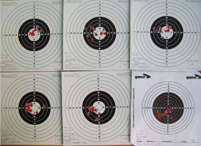 En las dianas que expongo a continuación no se corrigio en altura en ningún tiro salvo por el viento, que hacia el final amaino un poco.