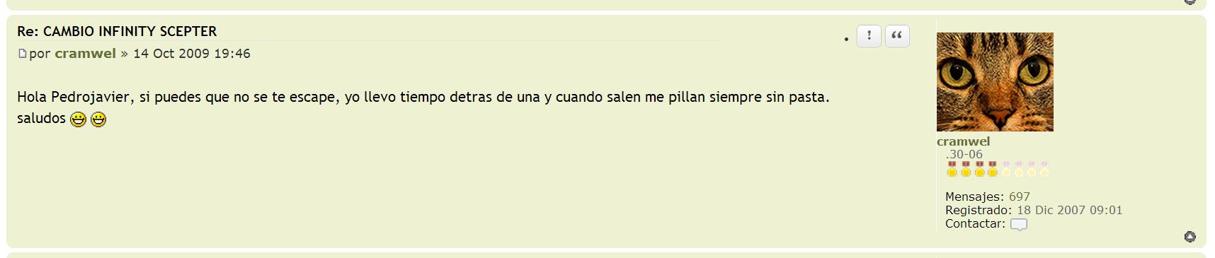 14/10/2009- Anuncio titulado: "Cambio Infinity Scepter", del forero Varoma