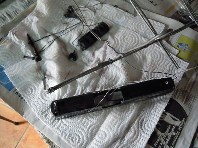 Ahora, tenemos la pieza perfectamente pulida, la limpiamos con alcohol, gasolina, disolvente, etc, para darle un desengrasado previo, y la hervimos en la cuba, colgada de unos alambres de hierro durante 5 minutos con agua y 200 gramos de sosa por litro de agua, no mas de 5 minutos, o empezara a pavonar ya a ronchas, ojo!!