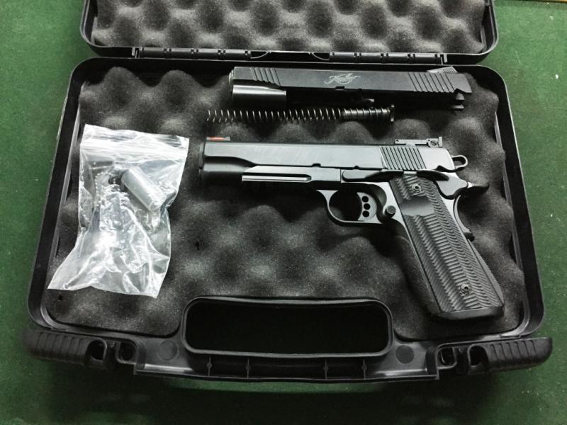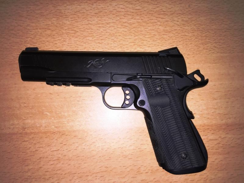 Se trata de una pistola de armazón 1911 monohilera, del conocidísimo fabricante americano KIMBER, con cañón de 5", totalmente en acero, con miras tácticas de tritium y carril picatinny para la instalación de linternas o láseres.