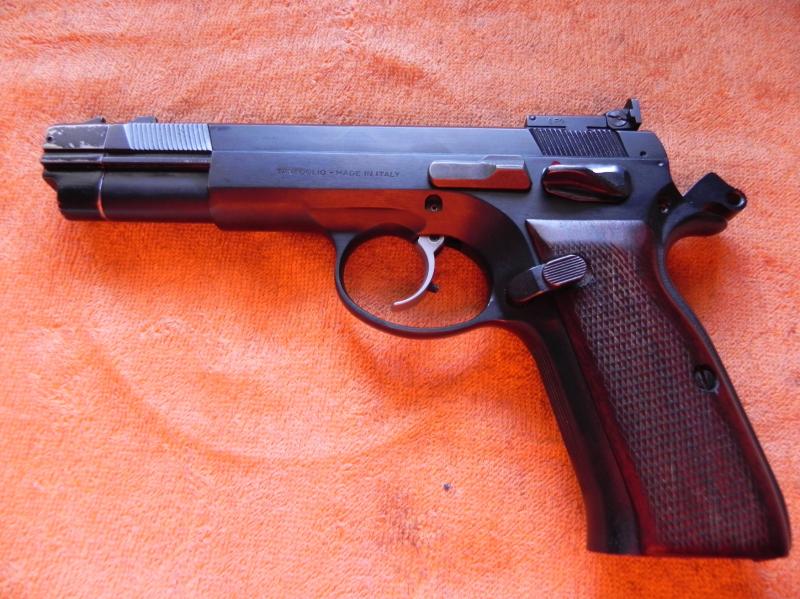Vendo pistola semiautomática TANFOGLIO, modelo¿P19?.Tiene cañón roscado de 5,5 pulgadas,contrapeso,alza regulable LPA,cachas de madera y un único cargador.La doble acción está anulada,y el gatillo afinado.