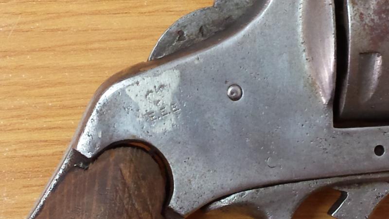 El pequeño es un revólver Velo Dog Hamerless seguramente de fabricación belga o francesa por las inscripipciones en idioma francés "Feu" y "Sur" que vemos en el recorrido de la palanca del seguro.